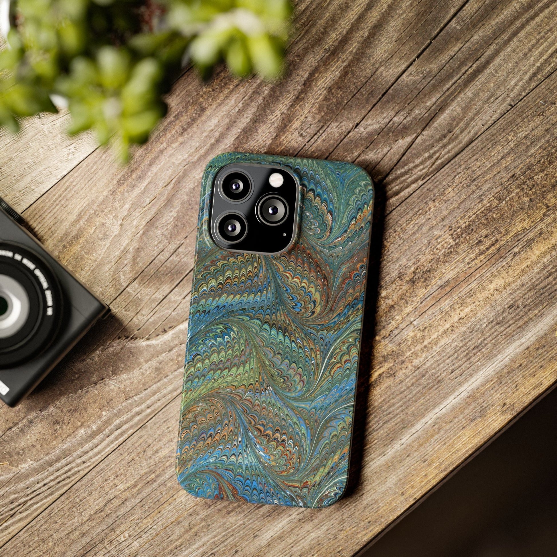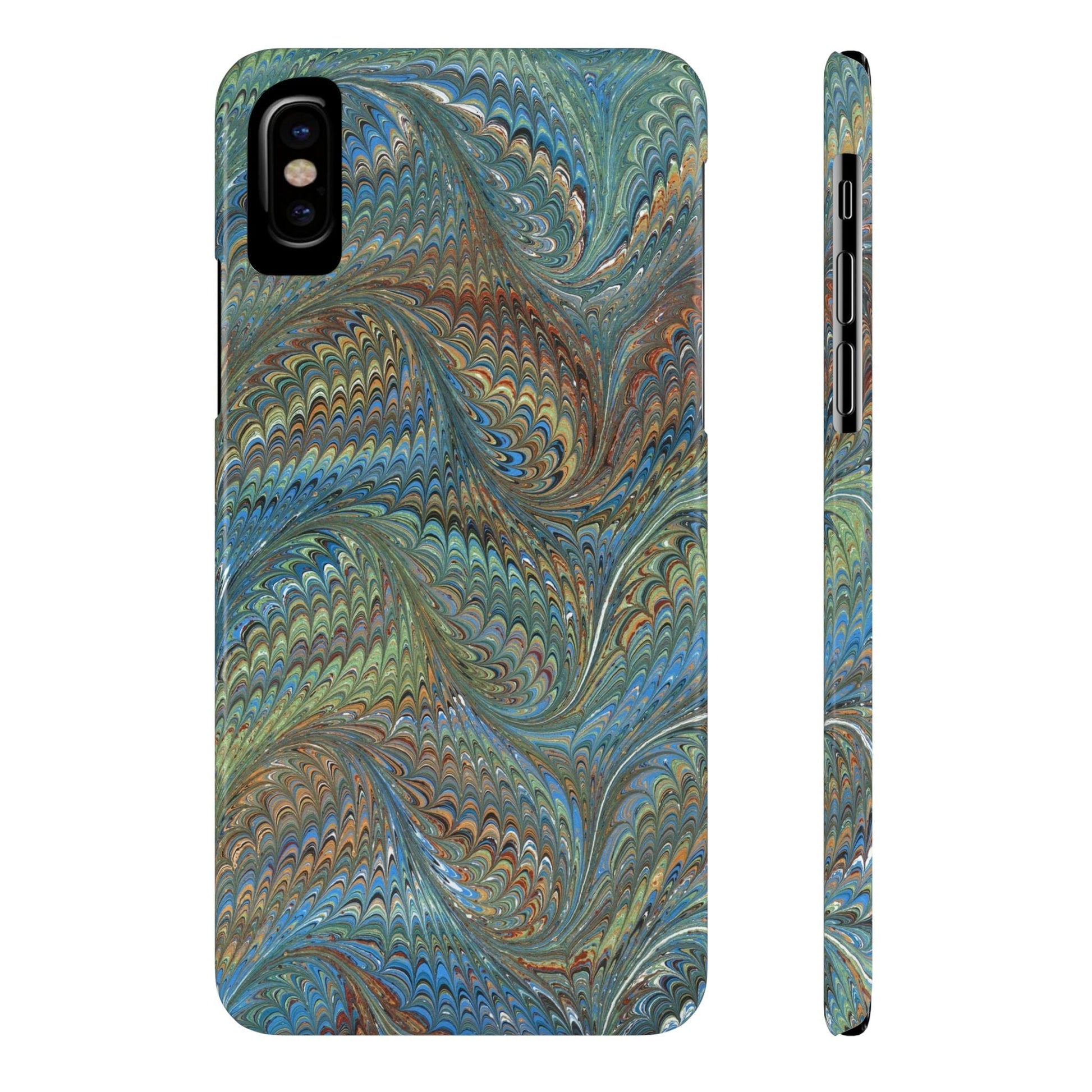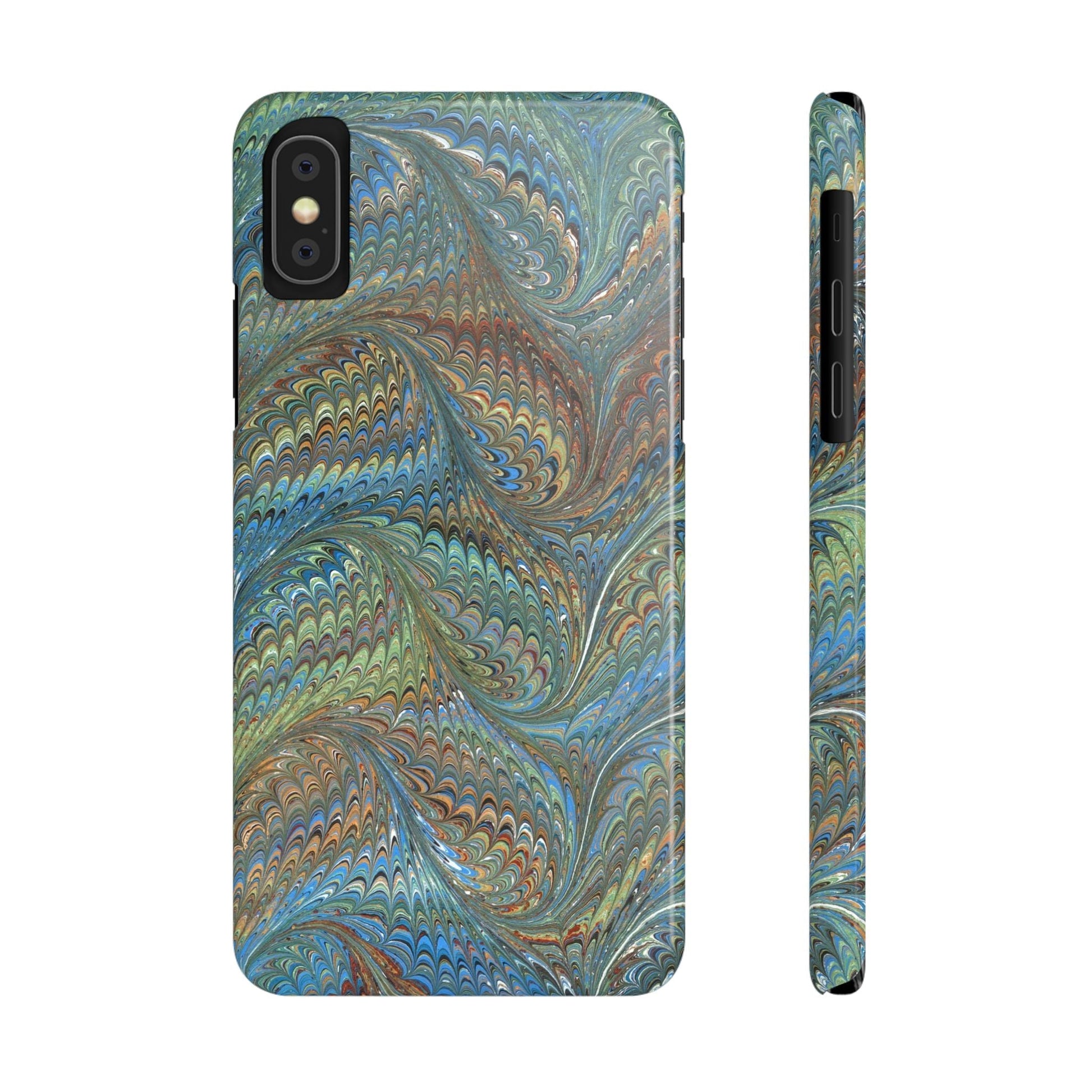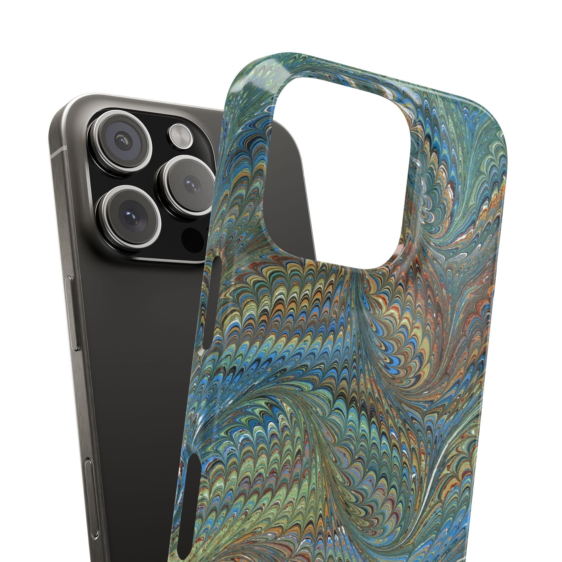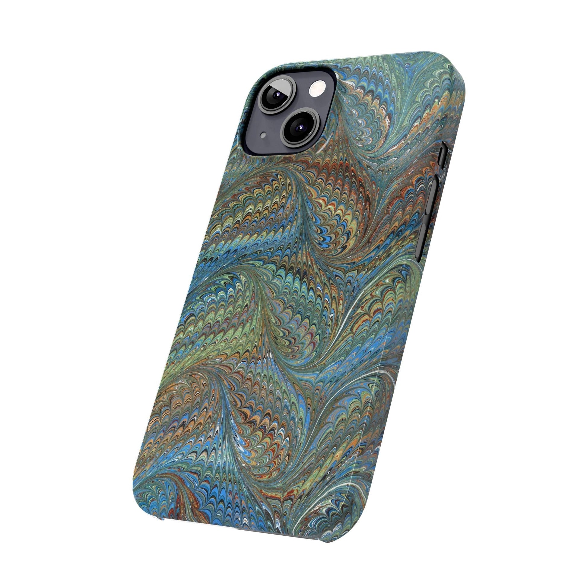 Blue and Green Italian Marbled Swirl Design, Italy Feather Phone Case, Multi-Color, Slim Phone Cases, Case-Mate IPHONE16 and all sizes